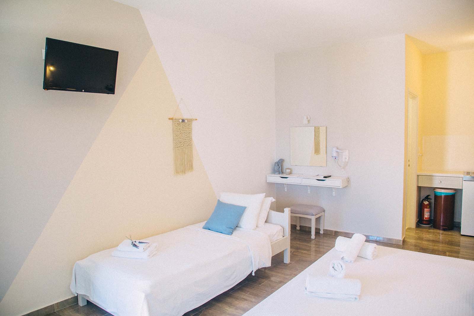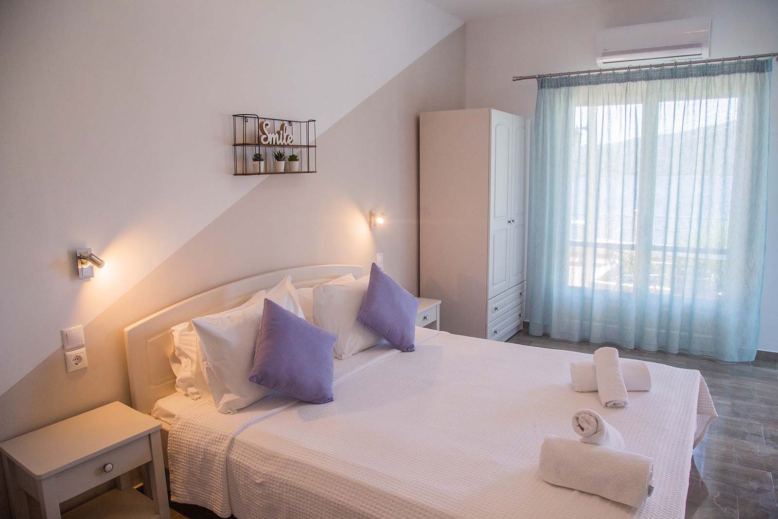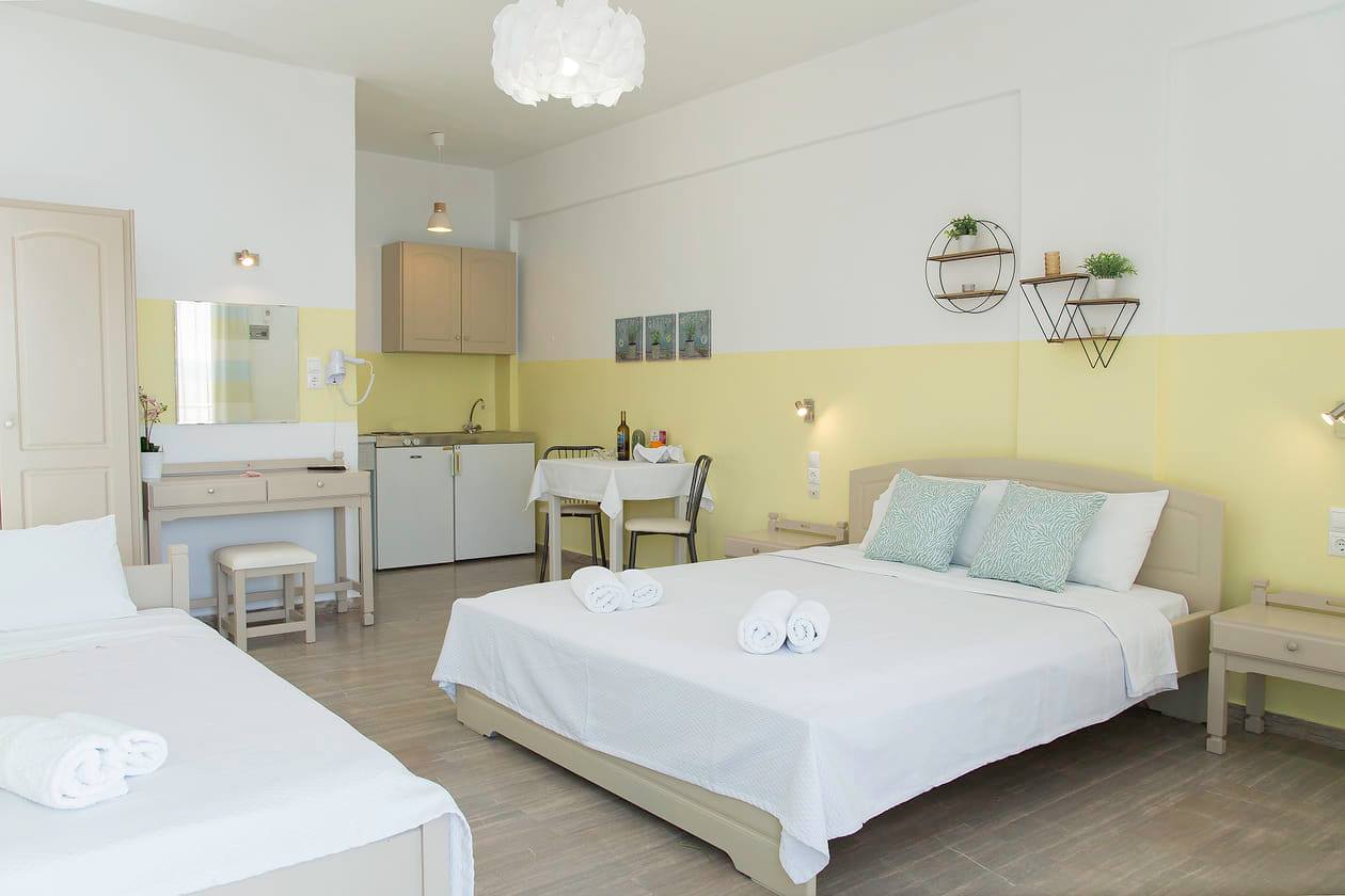 Απολαμβάνοντας την αύρα του κόλπου του Ασκελιού, ο επισκέπτης έχει στη διάθεσή του σύγχρονες παροχές, σ’ένα μοναδικό περιβάλλον 30 μέτρα από τη παραλία, 2 χλμ από το κέντρο του νησιού, 50 μέτρα από τα Super Market και μόλις 20 μέτρα από το εστιατόριο μας «Πανόραμα», όπου σερβίρεται και το πρωινό.